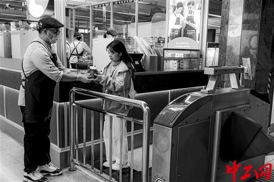 10月31日,北京地铁站一家咖啡店开业。为进一步提升旅客出行体验,助力打造北京“15分钟便捷生活区”,北京地铁公司对一号线八通线国贸站原有服务空间进行升级改造,并在地铁站内开设了咖啡店。据介绍,在进入地铁站前或途中,乘客可以通过手机应用提前订购并到店取货,减少等待时间,提升出行体验。本报记者 王薇薇 摄(每日工人)