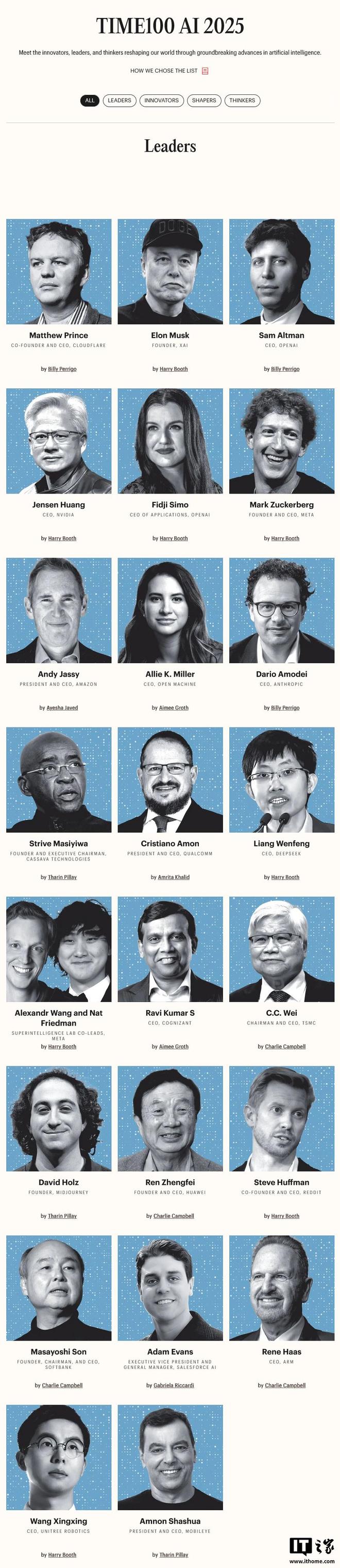 8月30日的主页报道,《时代》杂志于8月28日发行了2025年“全球AI领域的有影响力的人”(Time100 AI)。华为创始人Ren Zhengfei,DeepSeek首席执行官Liang Wenfeng,XAI创始人Elon Musk,OpenII CEO Sam Altman在“领导者”类别中排名“领导者”类别。它引用了一篇博客文章,并介绍了2023年成立了第一个“全球AI领域的100个有影响力的人”,以及Chatgpt版本的背景,引入了AI的公共潜力。今年是第三次发布年度列表。时报希望通过专注于人而不是机器来展示领导者,创新,倡导者,艺术家和政策制造商,以推动AI方向。 《泰晤士报》在其博客文章中指出,2025年的列表具有与塔兰托的竞争强度。一方面,投资者向初创企业注入了数亿美元Nical Weltents,使AI研究人员成为自由NBA代理的转移,并以两个著名的人物Alexandr Wang和Nat Friedman进行了转移。 The "Leaders" List also includes the following characters (based on the official ranking): CloudFlare co-founder and CEO Matthew Prince Xai founder Elon Musk Openai CEO Sam Altman Nvidia co-founder and CEO Jenxun Huang Meta Founder and CEO Mark Zucker Qualcomm Ceo Amon Deepseek Founder and CEO CEO Liang Wenfeng Liang Chairman and CEO TSMC founder and首席执行官Wei Zhejia软银创始人兼首席执行官Masayoshi Sun创始人兼首席执行官Wang Xingxing Meta创始人兼首席执行官Alexandr Wang。此外,“创新者/旅行者”列表包括:埃德温·陈(Edwin Chen),埃德温·陈(Edwin Chen),艾伯(Asuber AI)的创始人兼首席执行官,马马(Pony Ma)的创始人兼首席执行官,以及斯坦福·海(Stanford Hai)或“人工智能教堂”的Co-dean li feifei; “思想家”包括Xue Lan,Xue Lan,Tsinghua University,Karen Hao等的中国作家和高级记者。Nvestment规模不断扩大,推动了全球经济增长。计算机科学家斯图尔特·罗素(Stewart Russell)估计,当前计划的支出的数量是“曼哈顿计划”通货膨胀的25倍。名单上的许多决策者都为这些资金带来了艰巨的方式,包括儿子Masayoshi,Altman,Musk,White House AI负责人David Sachs和Eu Henna Weirmanda图书馆。